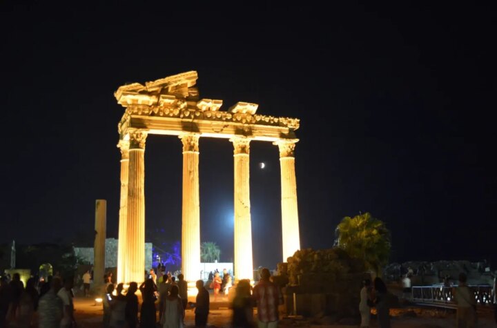 Antalya'nın Manavgat ilçesindeki Apollon Tapınağı, turistlere kanlı ay tutulmasını izleme fırsatı sundu. Tarihi atmosferde...