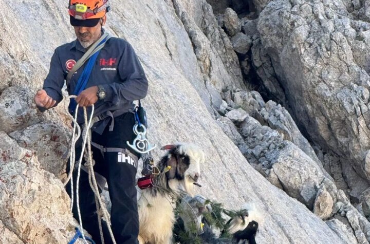 Antalya'nın Gündoğmuş ilçesinde mahsur kalan 5 keçi, İHH gruplarının 5 saatlik kurtarma operasyonuyla sağ...