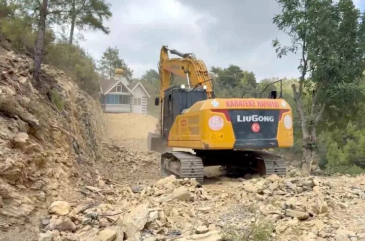 Antalya'nın Gazipaşa ilçesinde orman sonuna inşa ettiği meskeni, ray sistemi ile 150 metre taşıyan...