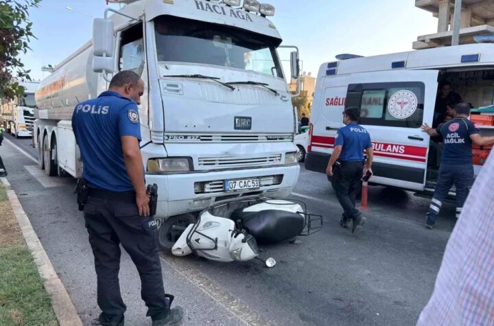 Gazipaşa'da meydana gelen kaza sonucunda su tankeri ile motosiklet çarpıştı. Motosikletin şoförü anne A.Y....