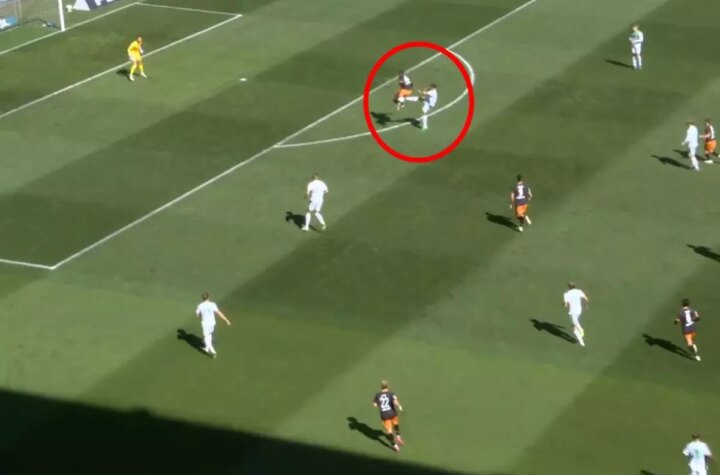 Trabzonspor forması giyen Okay Yokuşlu, Fenerbahçeli futbolcu Kerem Aktürkoğlu'na yaptığı faulün akabinde VAR incelemesi...