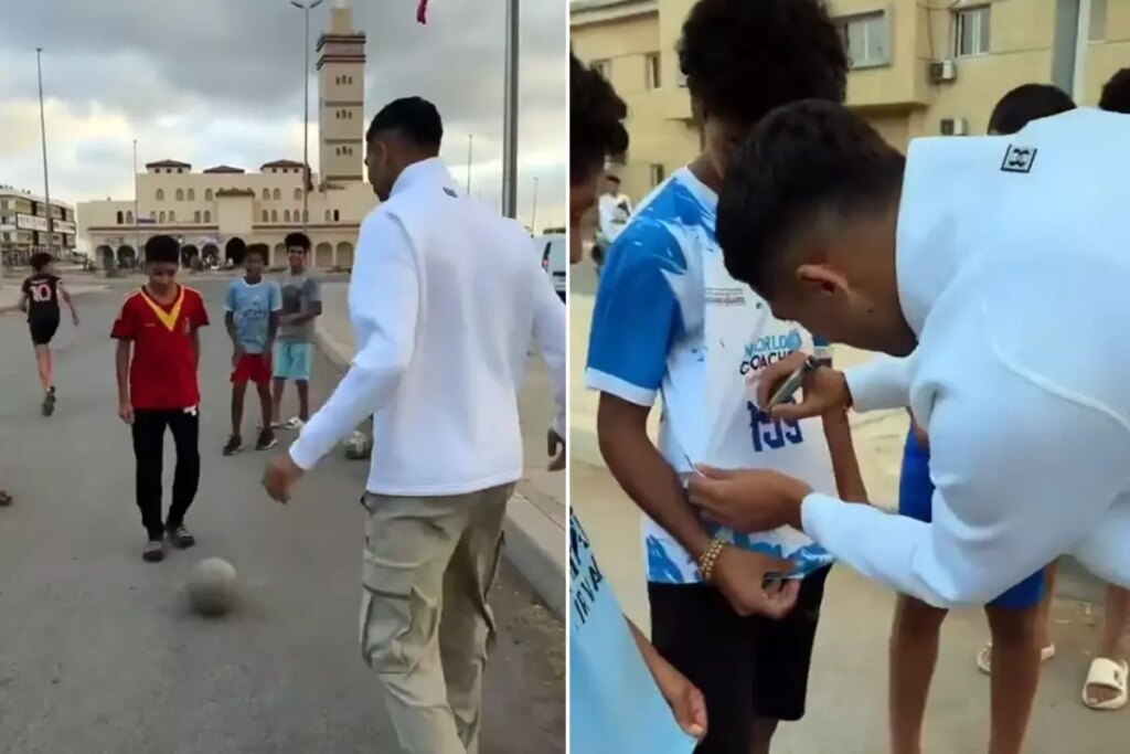 Psg‘nin yıldız futbolcusu Achraf Hakimi, ulusal kadro kampına giderken sergilediği davranışla gönülleri fethetti. Yolda top oynayan çocukları gören Faslı oyuncu, aracını kenara çekip onlarla futbol oynamaya başladı.