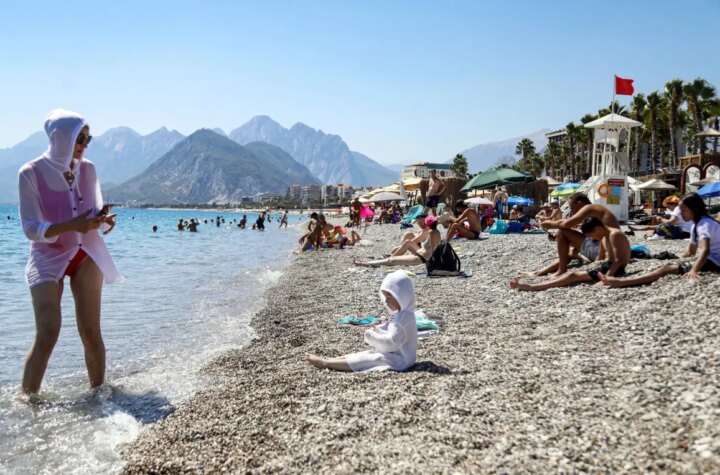 Antalya'da termometreler 37 dereceyi gösterirken, yüksek nem ile hissedilen sıcaklık 44 dereceye ulaştı. Yerli...