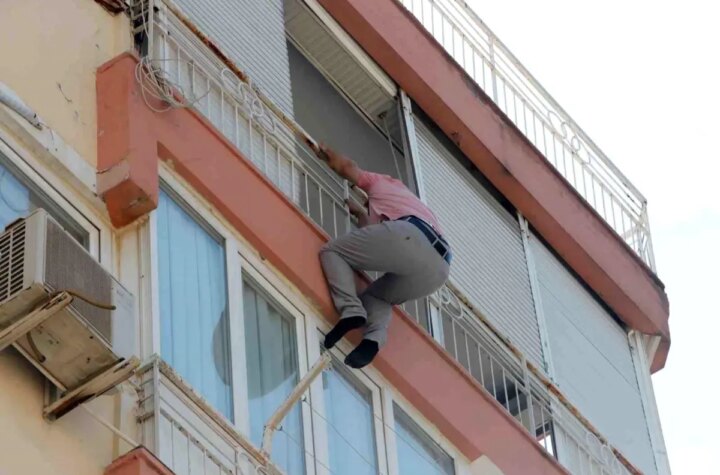 Antalya'da boşanma kademesindeki eşi ile çıkan tartışma sonrası balkonun demir korkuluklarına çıkan şahıs, yaklaşık...