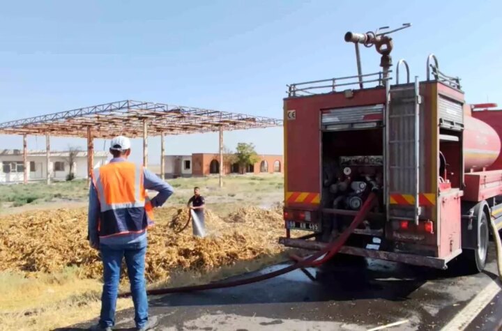 Aksaray-Konya kara yolunda bir tırın dorsesindeki samanların tutuşmasıyla başlayan yangın, öteki şoförlerin ikazlarıyla denetim...