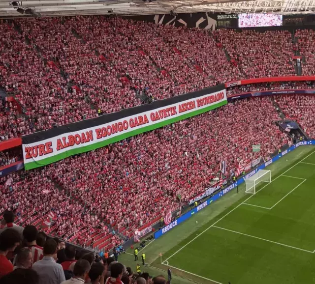 Aynı turnuvada bir diğer İspanyol grubu Athletic Bilbao ise farklı bir tutum sergiledi. San Mames Stadı’nda Arsenal’i ağırlayan Bilbao taraftarları, Gazze’ye takviye pankartı açtı. Pankartta, “Bugünden son güne kadar yanınızda olacağız” bildirisi yer aldı.